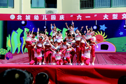 20日,滨城区滨北办事处北城幼儿园举办了题为“欢乐童年,共筑和谐家园”的庆六一文艺汇演活动,幼儿园邀请家长加入到孩子们的庆典之中,亲子同舞。幼儿园的老师、孩子、家长精心准备了30多个节目,带来了一场丰盛的视听盛宴。