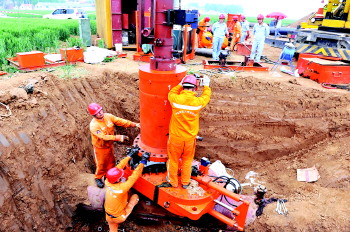 根据该段管线状况,国务院安委会人员、中石化集团安全隐患检查小组先后到该段管线进行检查,要求全力进行隐患整治。该处根据实际情况,成立了安全隐患治理小组,决定在距离原管道西侧25米处采用定向钻穿越方式,重新敷设一条管线。因该段管线穿越的泗河是山东省的大型河流,因此,在河道中施工,需要得到水利等政府多个部门的审批许可。对此,在向当地政府主管领导说明情况后,济宁市开通了“绿色通道”,加快各种手续的审批进度,在迅速完成了各项行政审批手续后,立刻组织专业施工队加班加点进行施工。为提高施工进度,保证施工安全和质量,该处干部员工与施工人员放弃休息时间,克服恶劣施工环境带来的不利影响,经过近一个月的紧张施工,总长度达1000余米的水底管线一次投用成功,管道隐患被彻底消除。