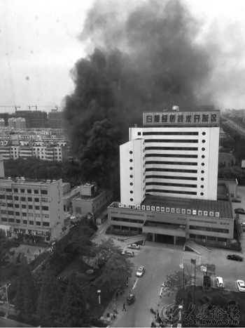 本报5月21日讯(记者 张萍) 21日下午1点多,日照市经济开发区管委空调机房上的冷却塔失火,现场浓烟滚滚。火灾很快被赶去的消防人员扑灭,没有造成人员伤亡。