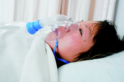 小图:22日,手术后躺在肾移植监护病房中的李巧粉。