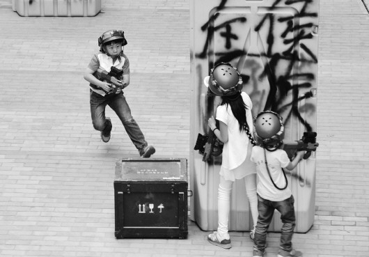 小朋友在真人CS射击场上玩嗨了。 本报记者 张中 摄