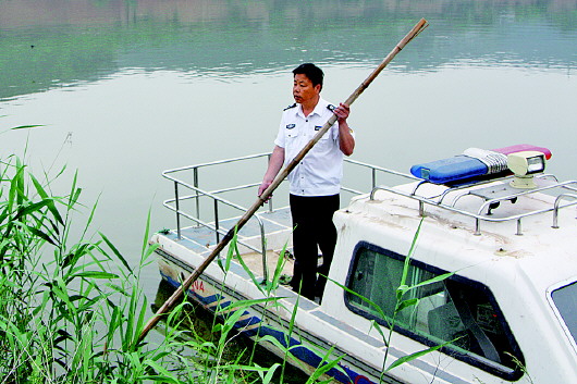 郭向阳在水泊梁山景区水面巡逻。 本报记者 岳茵茵 摄