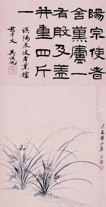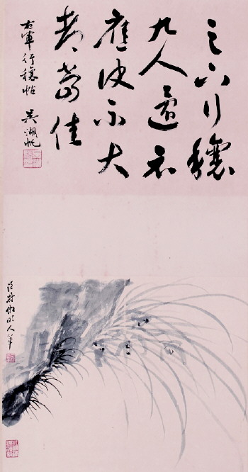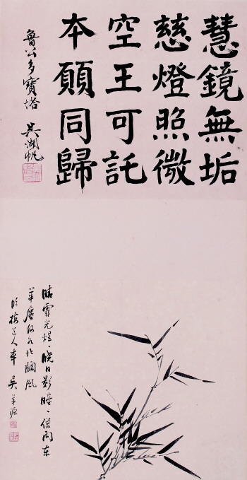 吴华源(1893-1972),江苏苏州桃花坞人,家富收藏,55岁定居香港,72岁客居台北,任艺术学院国画教授。吴华源善画山水、兰竹,作为与吴湖帆齐名的近代国画大师,吴华源的兰竹颇负盛名。这三件墨兰小品虽主题同一,但兰叶偃仰,墨花飘逸,互不雷同,寓稳健于秀美之中,使人有目下生辉之感。细观画作,一兰叶长撇,动韵有致,一幽兰一丛,萧散清逸,独标风韵,一简洁疏朗,高雅不群。三幅作品均用笔劲利,大气磅礴意绵绵,气脉不断,兰叶柔美舒放,清雅俊爽,又以吴镇法作墨竹一丛,竹叶以人字法小角度爽利撇出,组合自然,并使叶叶着枝,枝枝着干,一丝不苟,毫不含糊。此画所写墨竹,构图虽为一角,不是全景,但其中层次分明,虚实有度,竹子每一处出尖,均笔笔不乱,一股出尘拔俗的清刚之气洋溢于尺幅之间。