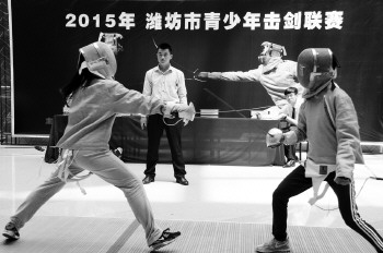 23日,在潍坊市青少年宫,潍坊市首届青少年击剑联赛正式开打。据了解,为期两天的比赛中有来自全市的99名小击剑手同台竞技,比赛将进行重剑、花剑、佩剑3中比赛方式。据潍坊市体育运动学校击剑主教练郑义介绍目前潍坊市大约有300余名击剑练习者,击剑练习逐渐被大家所接受。