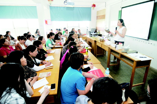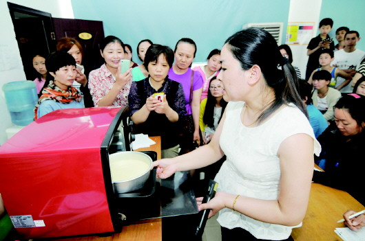 本报菏泽5月24日讯(记者 姚楠 陈晨) “李老师,我自己在家烤戚风蛋糕怎么总也不成功,前面还好好的,一出烤箱蛋糕就塌了。”“怎么判断蛋白打发好了?大概多长时间?”“这个配方里的牛奶能换成其他东西吗?”……24日上午,菏泽巾帼家政四楼讲堂里,伴随着丝丝甜美香浓的蛋糕香气,一群烘焙爱好者将授课老师、烘焙达人李方团团围住,七嘴八舌地问起操作中的疑惑。
