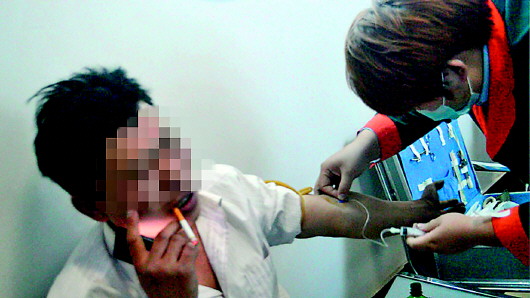 医务人员抽取王某血液检测酒精含量。 交警供图