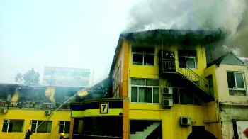 本报济宁5月25日讯(记者 孟杰 苏洪印) 25日上午,城区车站东路一家七天连锁酒店突然着火,火势蔓延很快,不到半小时附近上空就浓烟滚滚,消防迅速赶到对周围进行了警戒。据一位从酒店出来的顾客介绍,着火的是酒店三楼,火势很大,疑是被酒店相邻的一家餐厅引燃,由于酒店顾客疏散及时,没有造成人员伤亡。