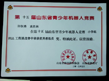 河东小学喜报频传,该校学生机器人代表队在5月22日山东省科协、省教育厅联合举办的第15届山东省青少年机器人竞赛活动中荣获小学组FLL工程挑战赛一等奖,学校并荣获优秀组织奖。