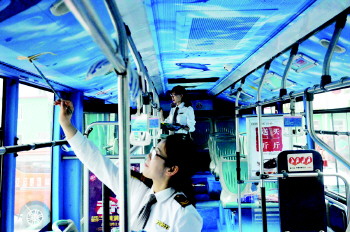 25日,在延安一路,记者看到了正在进行手工绘制的岛城首批3D立体主题公交车。据介绍,岛城第一辆以海洋为主题的隧道3路手绘车将于27日完成绘制并与市民见面。其余两辆车分别以“旅游”“交通博物馆”为主题,将于6月初完工。