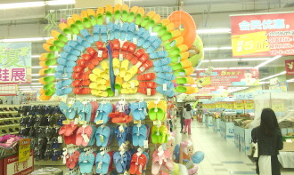 时间:2015年5月23日 自述:去逛超市,没想到工作人员这么有才用拖鞋拼出来一个孔雀开屏。 点评:超市大妈已经不满足于在卫生纸、凉席这些材料上发挥创意了,只是人家是“开屏”,您这是开“拖”吧。
