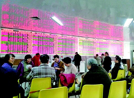 青岛的大爷大妈们拎着小马扎来到交易大厅,打打扑克牌,一天就又过去了。