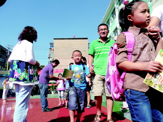 又到新生报名季,图为济南市师范路小学的新生在家长带领下迈入校门。(资料片) 本报记者 李飞 摄