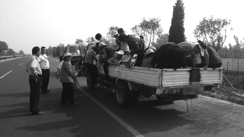 本报济宁5月26日讯(记者 孟杰 通讯员 陈正) 农用小货车后车厢里密密麻麻塞满了人,让正在驾车巡逻的交警膛目结舌。19日早上,曲阜交警在104国道上查获一辆小型农用货车,驾驶室和车厢里竟然塞进了34个人,按照规定,司机被罚款200元、扣3分。
