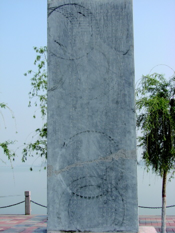 ▲邓氏后人在原址西侧新立的重修护城堤碑。