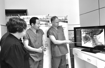 在详细询问了患者的病情后,克拉森教授当场为患者查体并与神经外科的医生们进行了病情探讨和交流,其新颖的思维角度、先进的医学理念让在场医生们耳目一新。