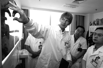 帕克教授与介入放射科主任徐锐博士讨论患者病情。