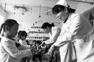 近日,环翠楼街道办南山、同德、海城、石河等5个社区邀请肿瘤医院的医护人员来到辖区内的幼儿园教小学生们正确的洗手方法,预防手足口病。