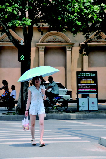 近期天气闷热,不少市民纷纷换上清凉装。 本报记者 王鸿哲 摄