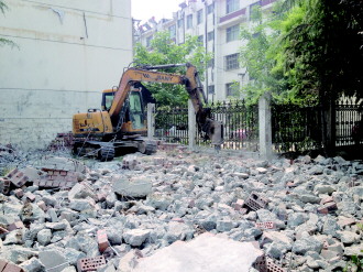 记者到来华山路与建华路路口的公园发现,已经有工作人员对问题地点建起来的建筑进行了拆除。周边居民告诉记者,这个区域附近很大范围内就这么一个公园,虽然地方不大但对于生活在附近的人来说很重要。多亏这个房子还没完全建好就被发现了,否则要是建起来,开了这个先例以后这个公园估计就全乱了。