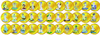 《三十三观音赐福彩金币大全套》由中国文物学会监制,中国佛教协会出品,均配有国家金银鉴定证书、监制证书、中国315防伪证书,多重防伪,确保价值!整套耗用6克999纯黄金,全球限量发行3000套,迎请价:16800元/套。一折迎请价1680元/套。