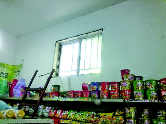 此前为了防盗,超市店主曾在窗户上安装了六根手指粗的铁条。窗户被撬后,两根铁条全被掰断。其中一根被掰断后,整根铁条弯曲了近90度。“前门没任何被撬的痕迹,小偷是撬开西墙窗户后爬进来的。这扇窗户的面积在半平米左右,离地面也得两三米,离最近的货架不到半米。”唐女士怀疑小偷在撬开窗户后入室行窃。
