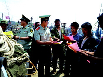 距6月1日的伏季休渔还有几天时间,为确保休渔工作顺利开展,日照边防支队组织官兵主动深入辖区港口等地,宣传国家有关休渔政策,积极做好休渔期渔船民的管理和服务工作。
