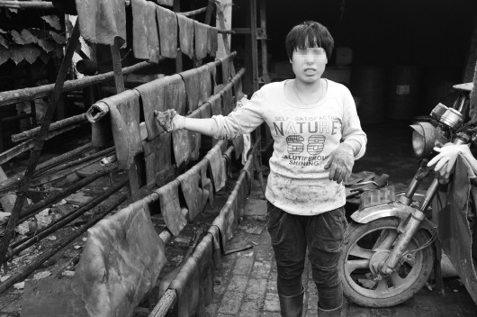 无证豆腐皮黑作坊露天生产,工人身上油腻不堪。(资料图) 本报记者 杜雅楠 摄
