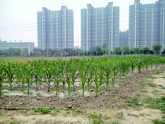 市民在麒麟阁对面的空地种上了玉米。 本报见习记者 傅浩 摄