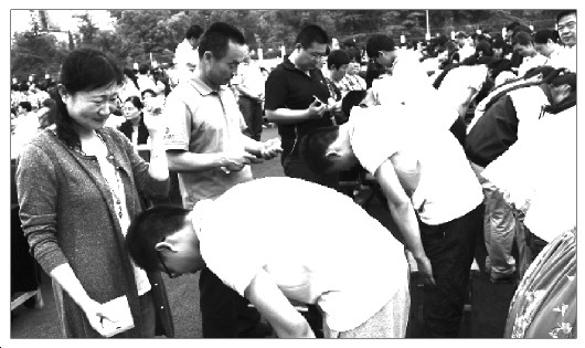 初中毕业生向父母鞠躬