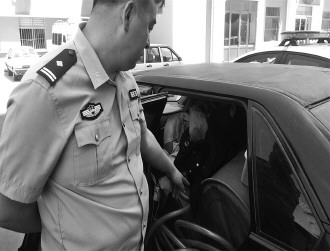 当时,那辆黑色桑塔纳刚启动驶出几步,一辆警车迎面围堵过来,司机迅速倒车逃窜。民警驾车将其堵截逼停。