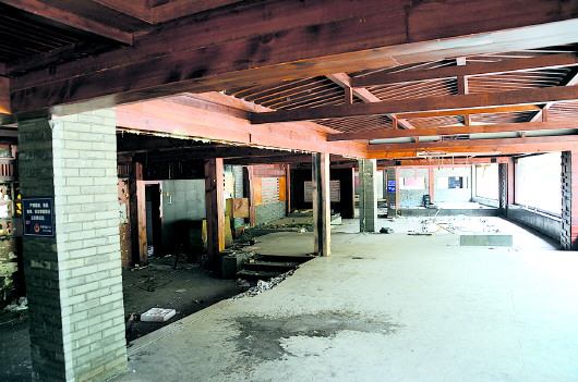 酒吧内部设施已被拆除,地面、墙体都出现了破损。