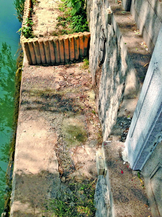 沿着护城河再往北走,在太平泉附近,就闻到一股恶臭味,仔细寻找发现,这里的污水同样是从排污口流到护城河中的。排污口中断断续续的有污水往护城河中流,排污口下方已经汇集了一摊黄色浑浊液体,散发着臭味。