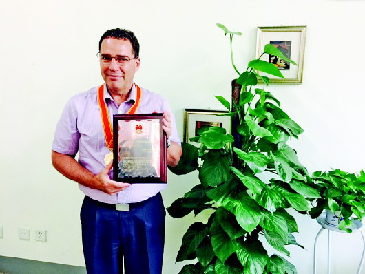 ◥对于获得2015年“泉城友谊奖”,布莱恩·甘德感觉这是对自己工作的认可。