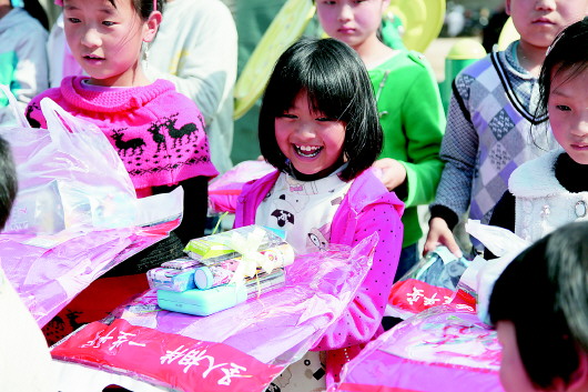 玉山小学的景超小朋友拿着手里的新书包和文具,忍不住一遍一遍地打开看看。“最喜欢这个铅笔盒,上面还印着奥特曼呢,我最喜欢奥特曼了。”小景超告诉记者,他的铅笔盒早就坏了,现在有这个新的铅笔盒真是太高兴了。
