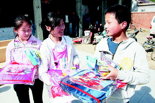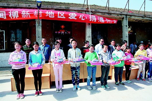 “我们村是一个以种植花生为主的贫困村,人口2700余人,贫困户有385户。2014年村集体收入仅10.5万元,负债却达到97万元。”村委会工作人员告诉记者,务农收入低,现在很多村子里的年轻人都外出打工,村子里的留守老人和留守儿童特别多。“你们给孩子和老人送来的学习用品和衣物,他们特别高兴,感谢好心人。”