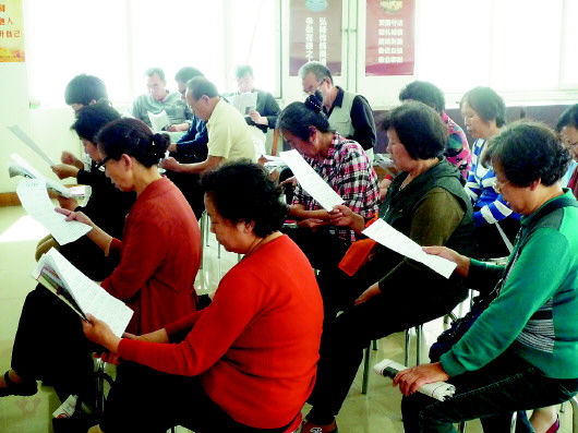 5月13日下午,吉祥苑社区党员骨干在居委会活动室唱响红色歌曲。歌声响起,熟悉的旋律带党员们回到了奔腾着热血的时代。