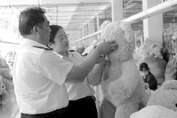 小零件如何才能抗压达标?微山凯利玩具公司生产的毛绒玩具,在拉力测试中达标率很高,能持续承受90牛顿的压力,比国标还高出20个牛顿。记者跟随检测人员走入其生产车间,工人们正在安装毛绒玩具的眼睛,生产厂长李永梅告诉记者,为防止零部件脱落,他们全部采用热熔机固定,在裁剪、缝制、填充等每一个环节都层层质检。因质量把关严密,他们生产的毛绒玩具,出口到了沃尔玛、家乐福等全球知名零售超市。