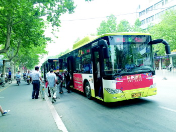 ◥高考期间,考生持准考证可免费乘坐公交车。本报记者 庄子帆 摄