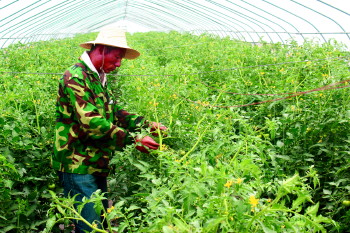 ▲农场工人每天早上根据订单摘取新鲜蔬菜。