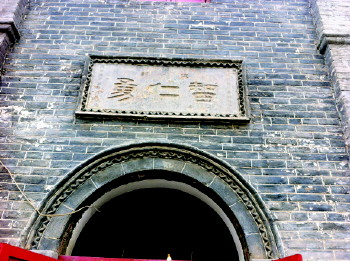 “智仁勇”楼是民国三十三年建,是博平县立简易师范学校,砖木二层硬山式结构,拱券门窗,屋顶前檐立三角形影墙,拱券门窗,左右二角各有墙柱,房脊有吻兽及走兽。 (凌文秀)