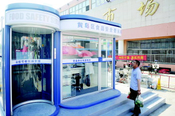 “食安便民亭采取自助服务的方式,安放在人流密集的农贸市场,这样消费者的举报可以马上反馈到食药监部门。让市民都参与到食品安全的监管中来,食品安全也就更有保障。”黄岛区食药监局相关负责人说。