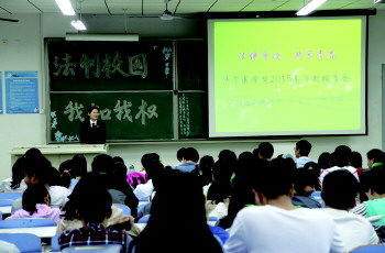 为保护大学生合法权益,预防大学生犯罪,东港区法院组织开展“送法进校园”活动,以提升大学生法律意识。近日,少审庭法官走进济宁医学院日照分校区,为该校师生带来了一堂精彩的普法知识讲座。此次讲座以“法在身边,共享青春”为主题,通过讲解犯罪及刑罚,正当防卫的有关问题,并以鲜活的案例为教材,采取以案说的方式,为大学生生动形象地普及了法律知识,受到广大师生的一致欢迎。图为,普法知识讲座现场。