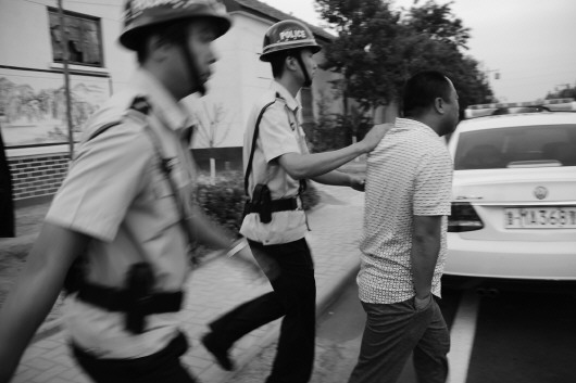 “老赖”李某被干警带走。 本报记者 王晓霜 摄