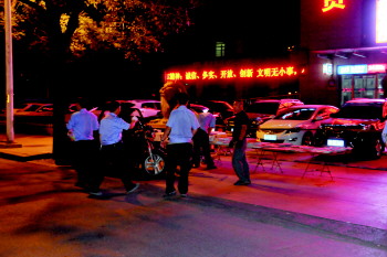 城管工作人员帮助摊贩收拾货物。 本报记者 王鸿哲 摄