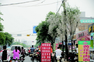 文化路街道的相关负责人赵主任告诉记者:“一般来说,大排档都集中在晚上经营,同时也是制造油烟最多的时候。油烟全都排到外面去,树木也就因此被熏死。另外还有周边的商家,把刷锅洗碗等热水就直接倒到树下面,这也是导致部分树木枯死的其中一个原因。”
