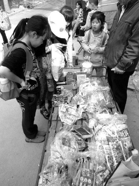 省城一小学门口,小学生选购零食。(资料片) 本报记者 李飞 摄