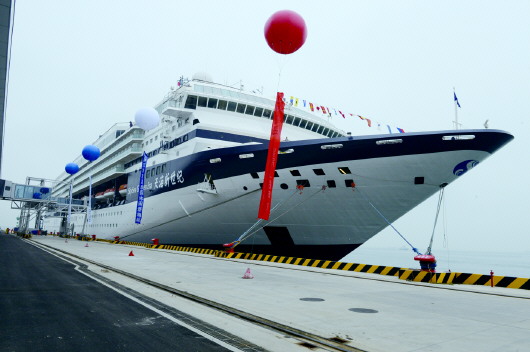 29日,“新世纪”号邮轮从邮轮母港出发。本报记者 官文涛 摄