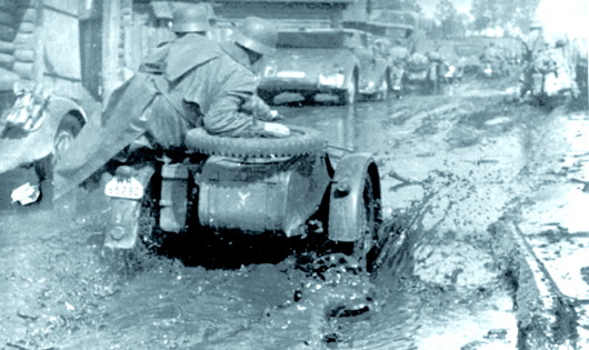 由于苏联领土过于广阔,道路交通又不及西欧良好,德军不得不把宝贵的油料浪费在运输过程中。这个时候,闪电战遭遇了一个始料未及的悖论——德军的装甲集群的确可以重复在西线上演过的大纵深穿插推进,但在辽阔的俄罗斯平原上,这种战术使用得越多,就意味着油料消耗越快,给后勤补给造成的压力越大。其结果是,闪电战从德国原先赖以立足的“神兵利器”蜕变为套在德国自己脖子上的绞索,实行得越成功,绞索就勒得越紧。