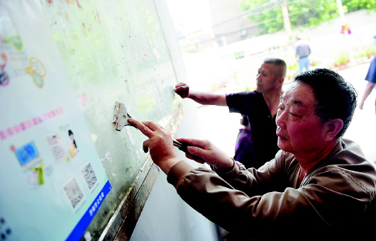 看到宣传窗上有小广告,他都会及时清理。