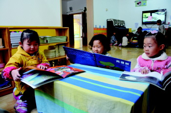 幼儿园的孩子们在进行阅读训练。(资料片)